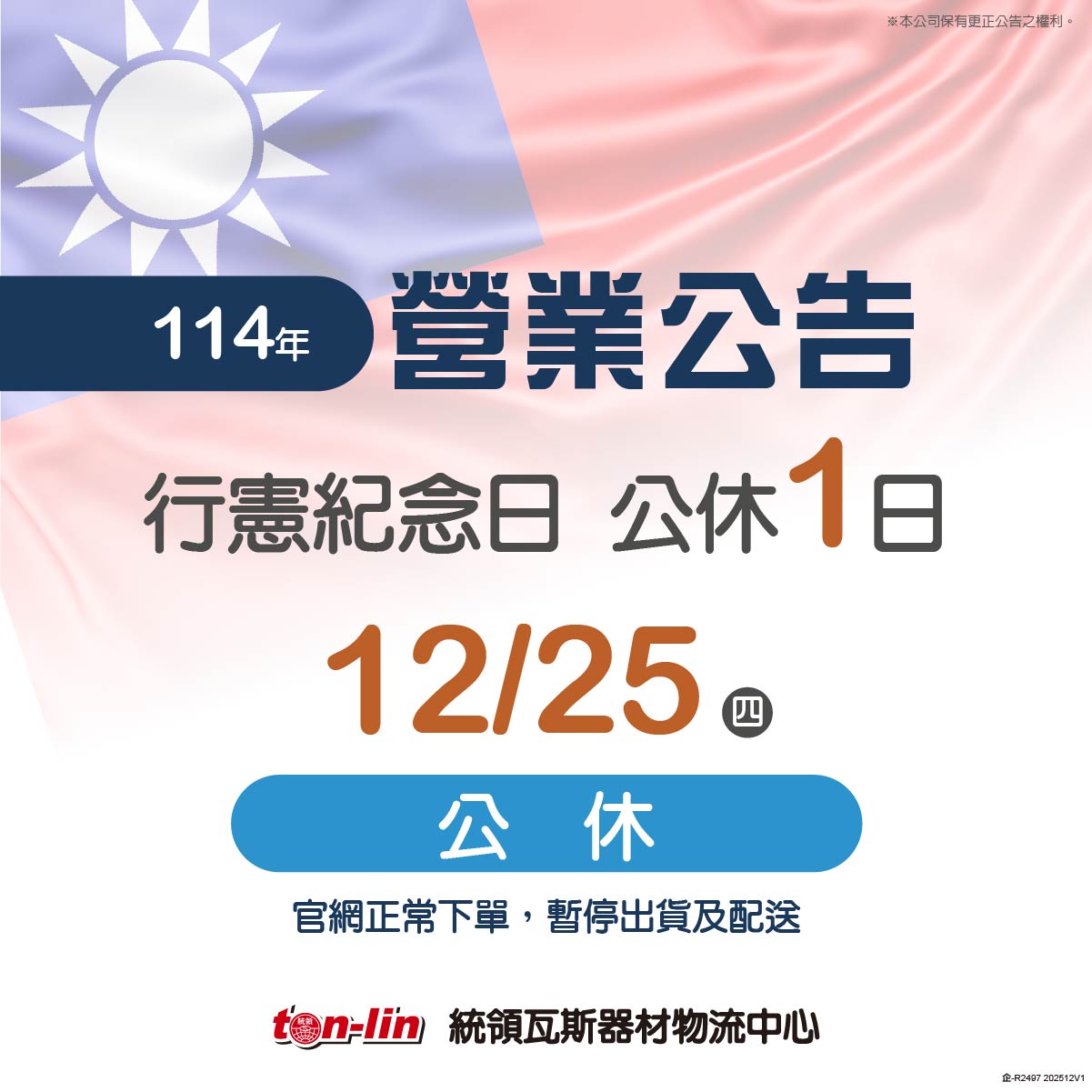 | 【🔔統領公告】行憲紀念日營業公告📜 | 2025-12-17 |
